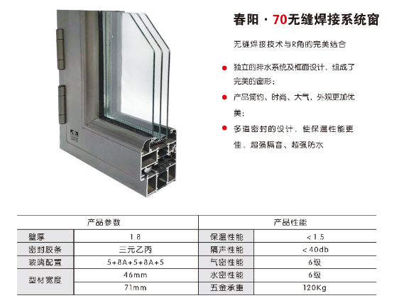 獨(dú)立的排水系統(tǒng)及框面設(shè)計(jì),組成了完美的窗形;產(chǎn)品簡約、時(shí)尚、大氣,外觀更加優(yōu)美;多道密封的設(shè)計(jì),使保溫性能更佳,超強(qiáng)隔音、超強(qiáng)防水。